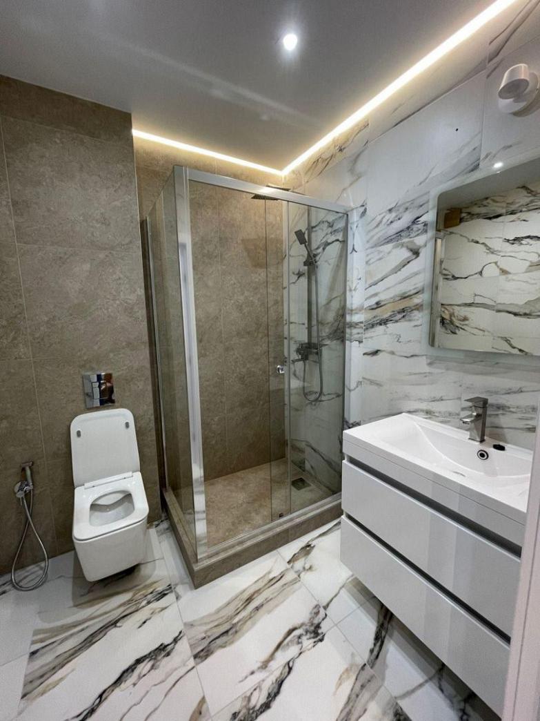 В подарок вся мебель и техника (двухспальная кровать, двухспальный диван, 2 ЖК ТВ, 2 шкафа-купе, гардеробная с шкафом (открытие - push (нажатием)), 3-и стола со стульями, 2 кондиционера, встроенная кухня, холодильник, бойлер, стиралка-автомат).